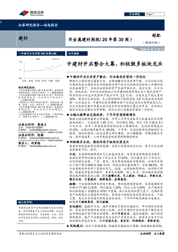 【国信证券】【20200727】非金属建材周报(20年第30周):中建材开启整合大幕,积极做多板块龙头-15页