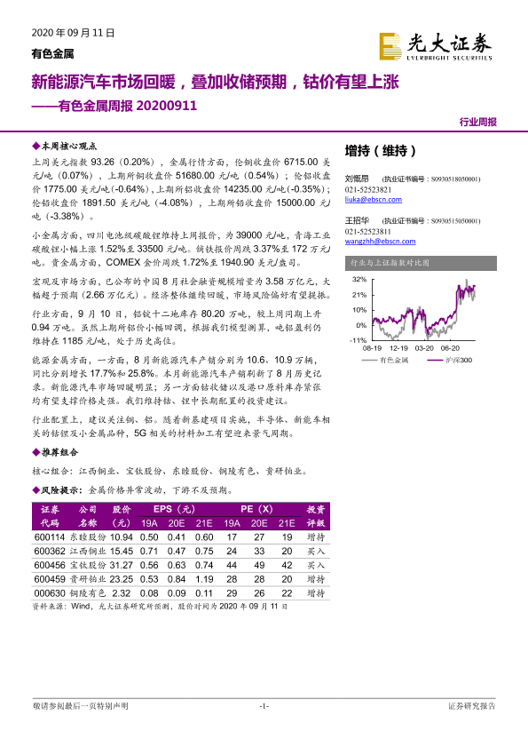 【光大证券】【20200911】20200911-光大证券-有色金属周报:新能源汽车市场回暖,叠加收储预期,钴价有望上涨-11页