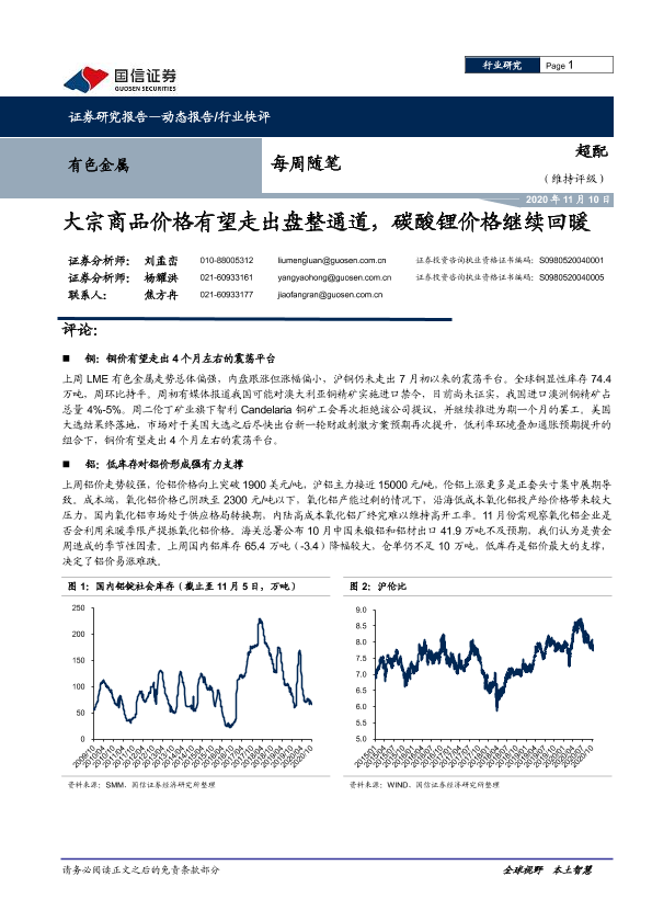 【国信证券】【20201110】20201110-国信证券-有色金属每周随笔:大宗商品价格有望走出盘整通道,碳酸锂价格继续回暖-5页