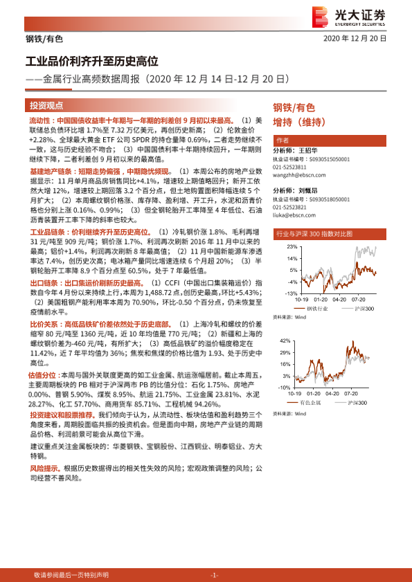 【光大证券】【20201220】金属行业高频数据周报:工业品价利齐升至历史高位-16页