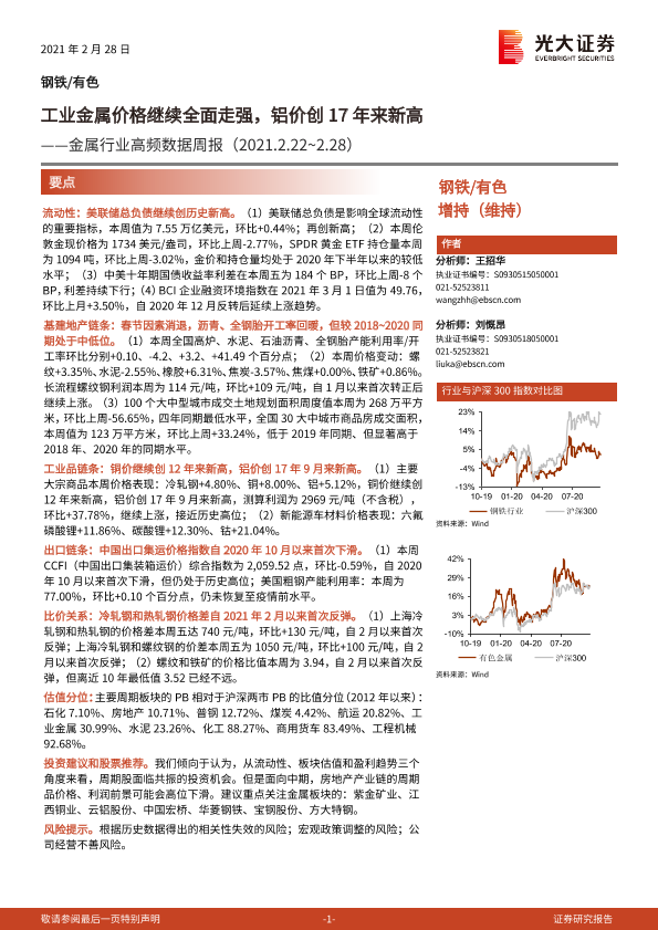 【光大证券】【20210228】金属行业高频数据周报:工业金属价格继续全面走强,铝价创17年来新高-16页