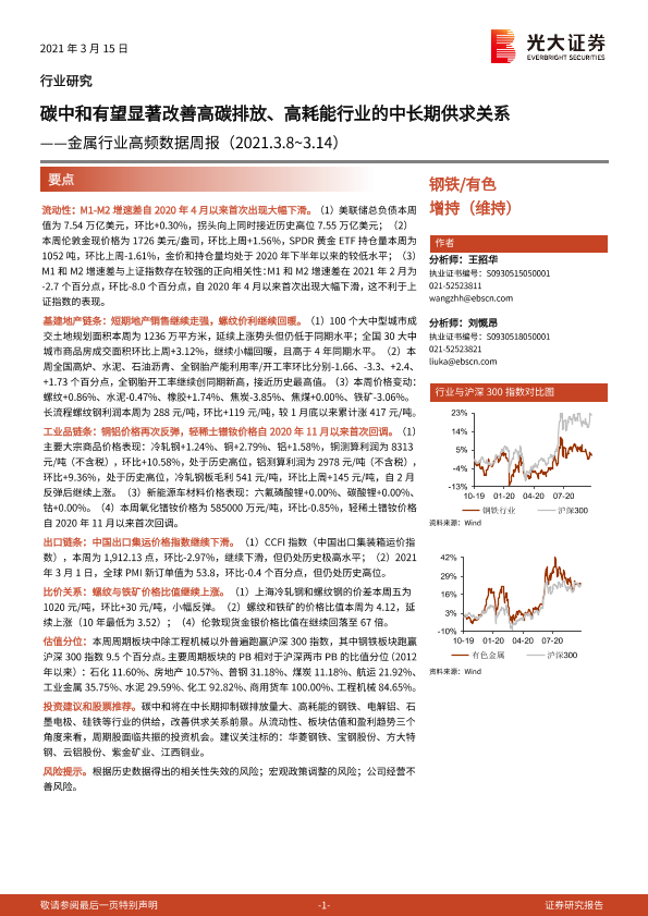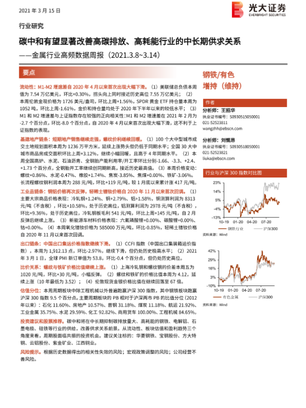 【光大证券】【20210315】金属行业高频数据周报:碳中和有望显著改善高碳排放、高耗能行业的中长期供求关系-16页