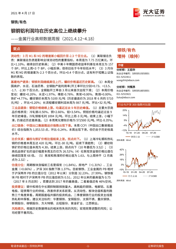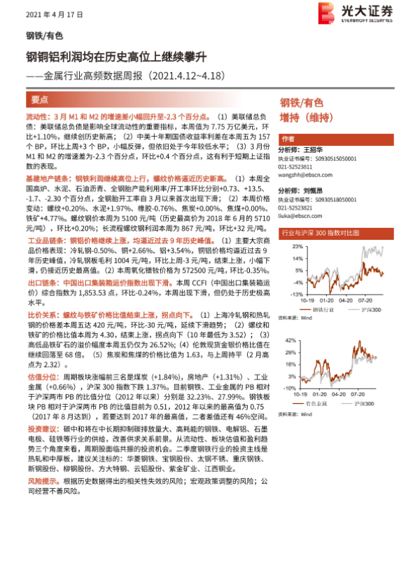 【光大证券】【20210417】金属行业高频数据周报:钢铜铝利润均在历史高位上继续攀升-15页