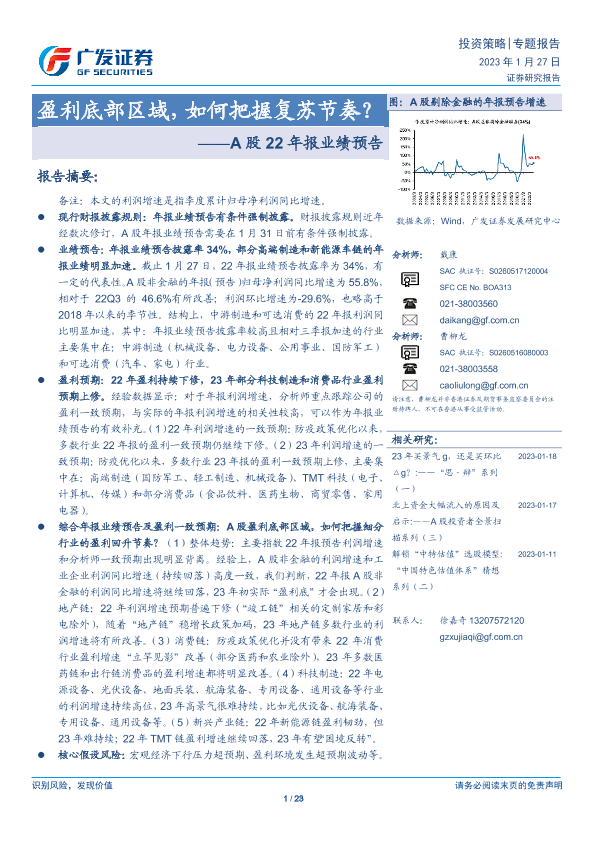 【广发证券】【20230127】A股22年报业绩预告:盈利底部区域,如何把握复苏节奏?-23页
