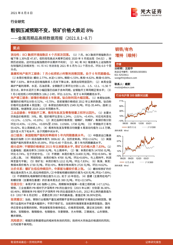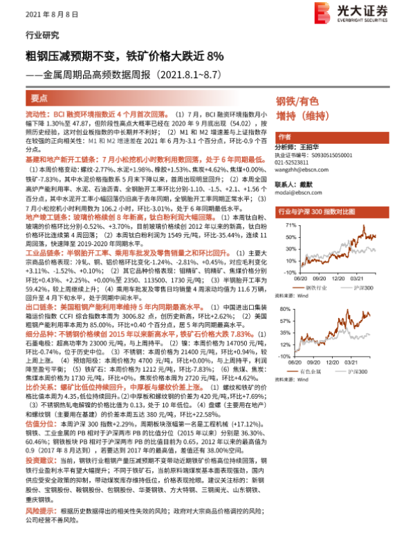 【光大证券】【20210808】20210808-光大证券-金属周期品高频数据周报:粗钢压减预期不变,铁矿价格大跌近8%-24页