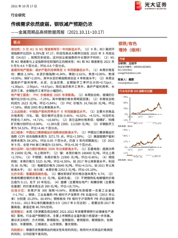 【光大证券】【20211017】金属周期品高频数据周报:传统需求依然疲弱,钢铁减产预期仍浓-24页