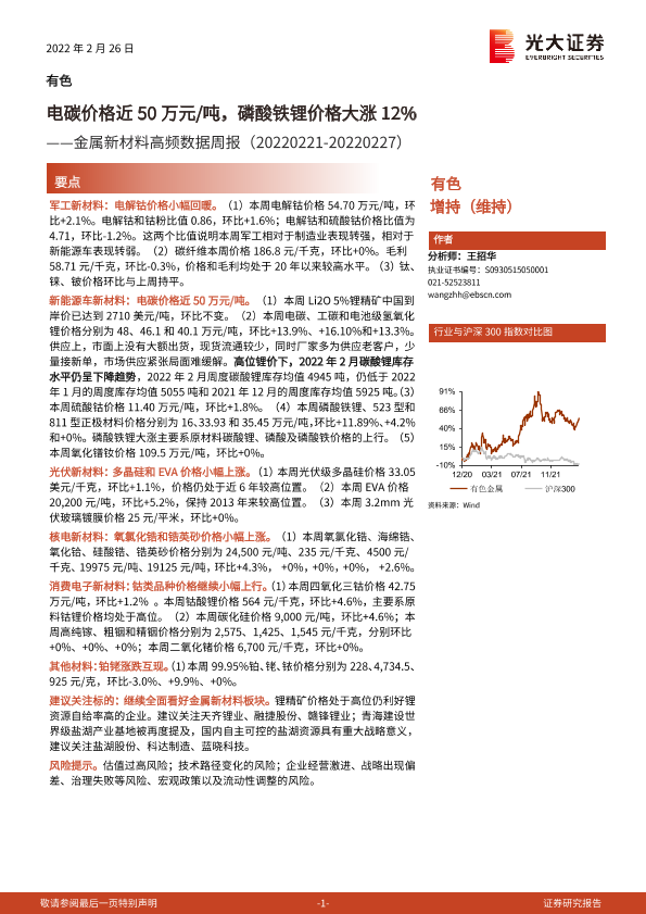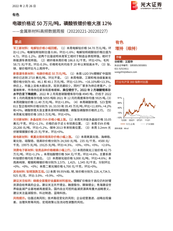 【光大证券】【20220226】金属新材料高频数据周报:电碳价格近50万元 吨,磷酸铁锂价格大涨12%-26页