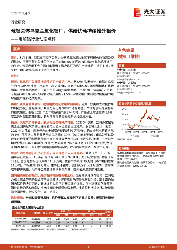 【光大证券】【20220303】俄铝关停乌克兰氧化铝厂,供给扰动持续推升铝价-5页
