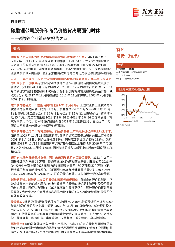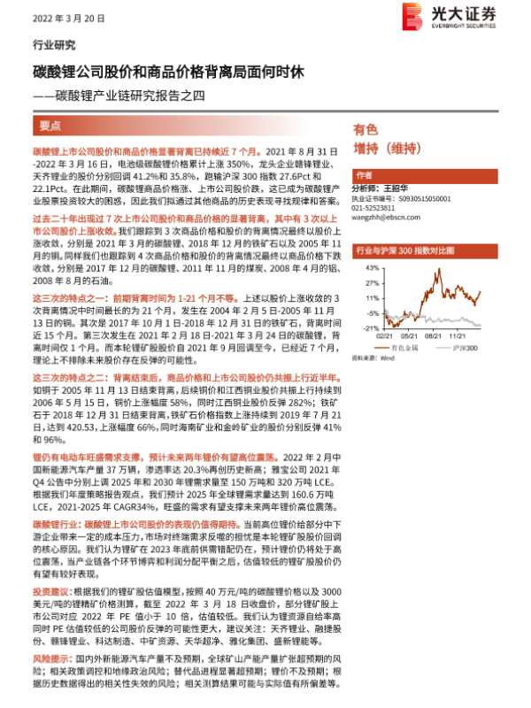【光大证券】【20220320】有色碳酸锂产业链研究报告之四:碳酸锂公司股价和商品价格背离局面何时休-7页