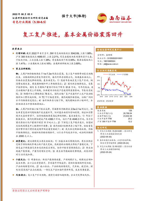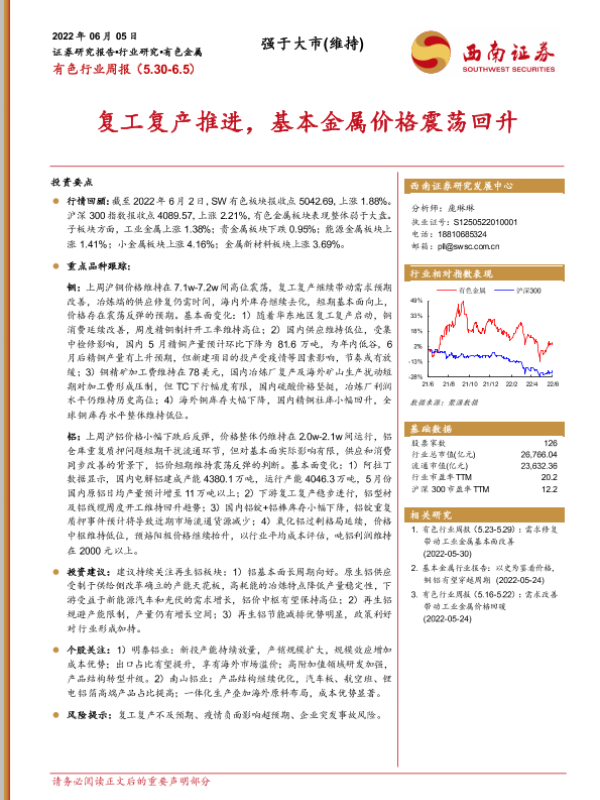 【西南证券】【20220605】20220605-西南证券-有色行业周报:复工复产推进,基本金属价格震荡回升-11页