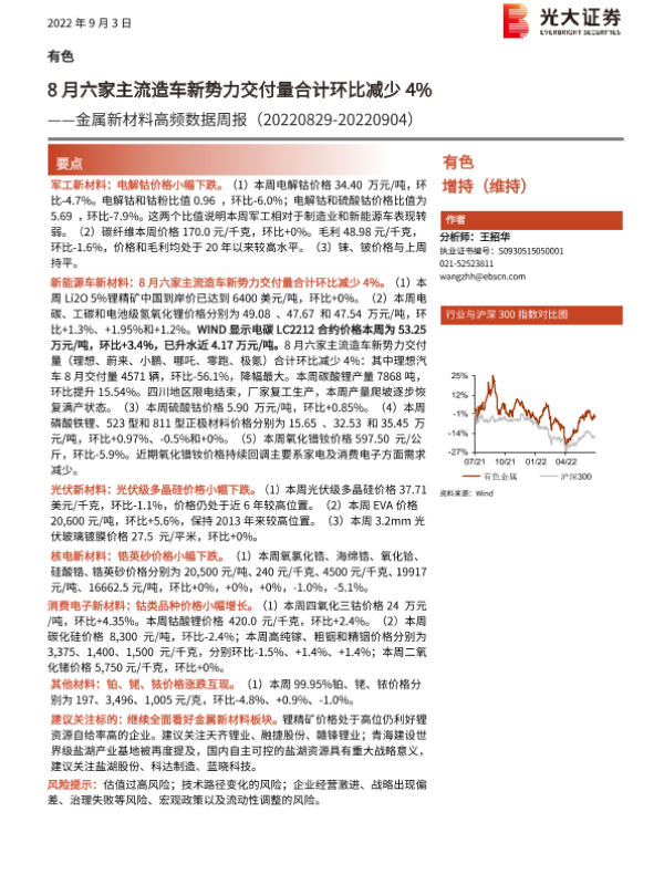 【光大证券】【20220903】20220903-光大证券-金属新材料高频数据周报:8月六家主流造车新势力交付量合计环比减少4%-26页