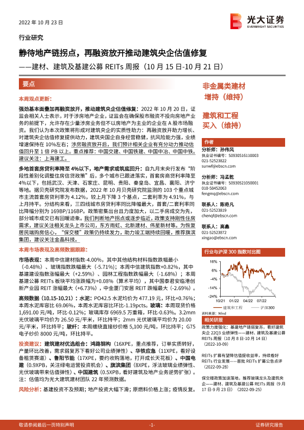 【光大证券】【20221023】20221023-光大证券-建材、建筑及基建公募REITs周报:静待地产链拐点,再融资放开推动建筑央企估值修复-19页