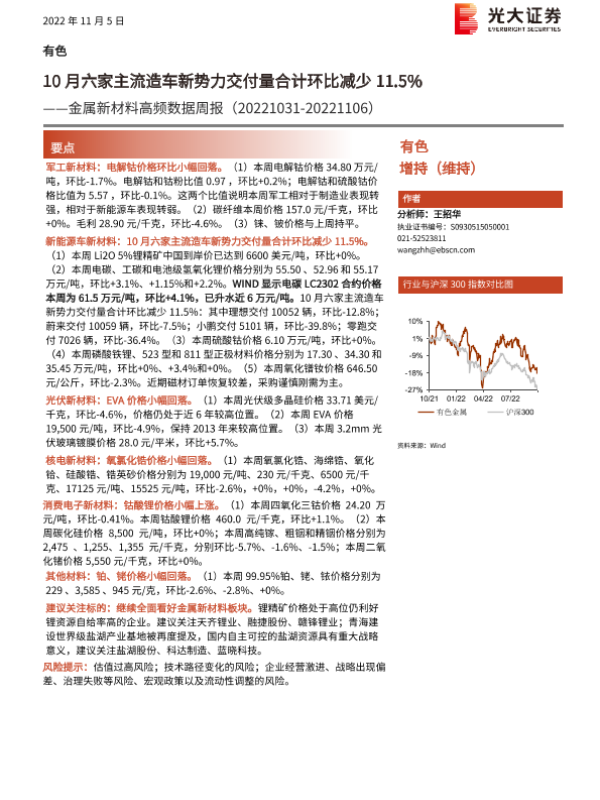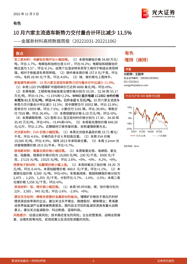 【光大证券】【20221105】20221105-光大证券-金属新材料高频数据周报:10月六家主流造车新势力交付量合计环比减少11.5%-26页