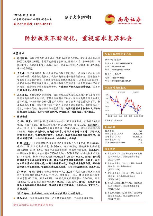 【西南证券】【20221211】20221211-西南证券-有色行业周报:防控政策不断优化,重视需求复苏机会-24页