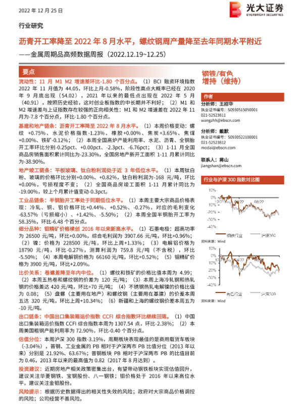 【光大证券】【20221225】金属周期品高频数据周报:沥青开工率降至2022年8月水平,螺纹钢周产量降至去年同期水平附近-26页