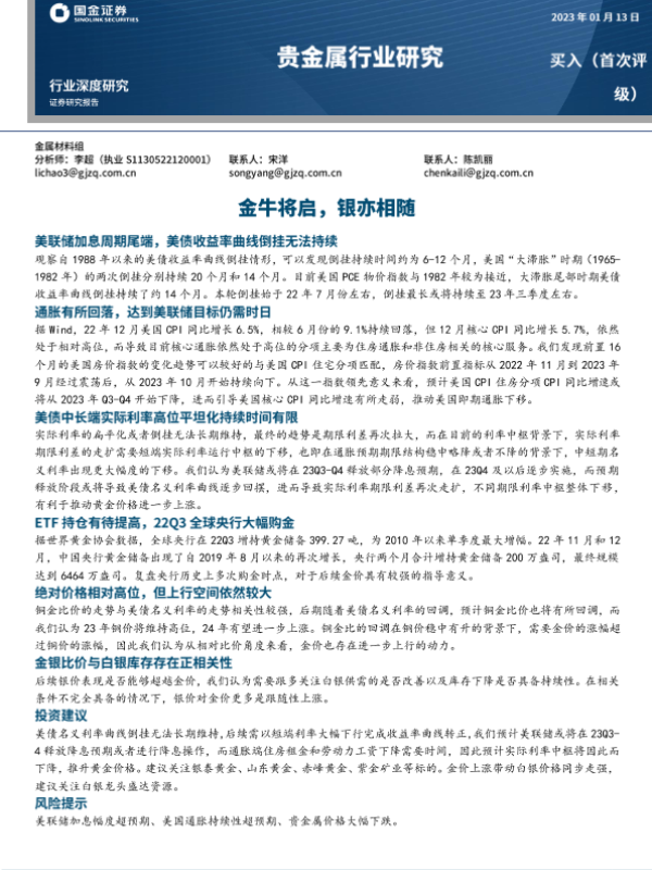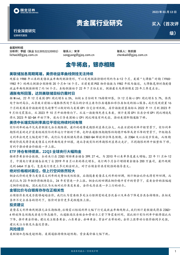 【国金证券】【20230113】20230113-国金证券-贵金属行业研究:金牛将启,银亦相随-36页