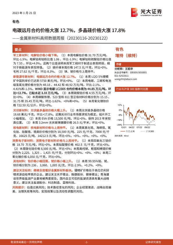 【光大证券】【20230121】20230121-光大证券-金属新材料高频数据周报:电碳远月合约价格大涨12.7%,多晶硅价格大涨17.8%-25页