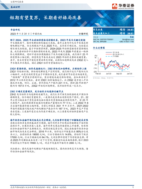 【华泰证券】【20230131】基础材料专题研究:短期有望复苏,长期看好格局改善-10页