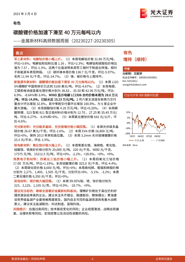【光大证券】【20230304】20230304-光大证券-金属新材料高频数据周报:碳酸锂价格加速下滑至40万元每吨以内-25页