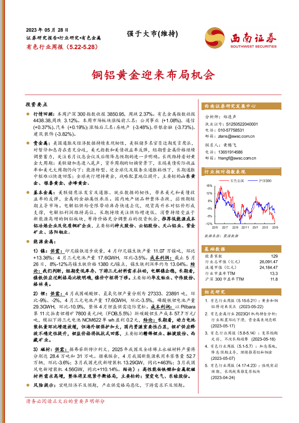 【西南证券】【20230528】20230528-西南证券-有色行业周报:铜铝黄金迎来布局机会-23页