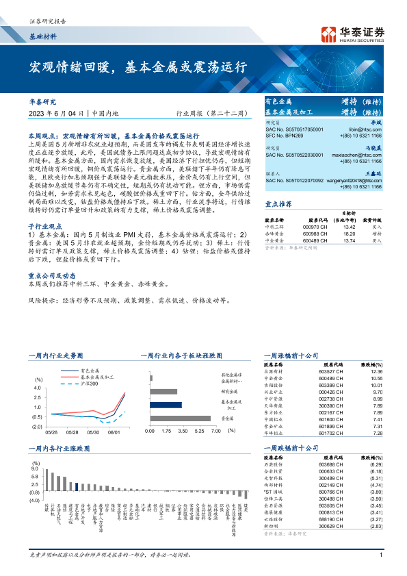 【华泰证券】【20230604】基础材料行业周报(第二十二周):宏观情绪回暖,基本金属或震荡运行-18页