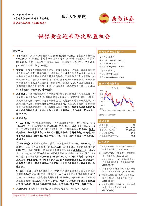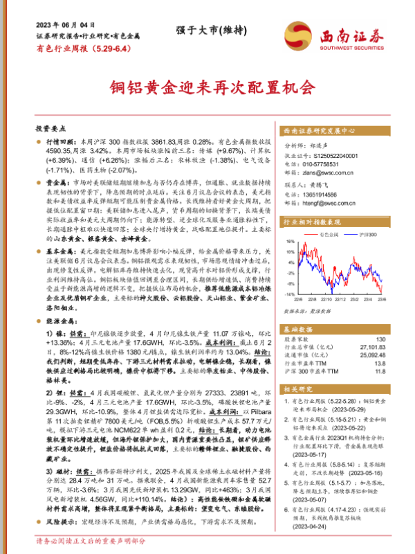【西南证券】【20230604】20230604-西南证券-有色行业周报:铜铝黄金迎来再次配置机会-23页
