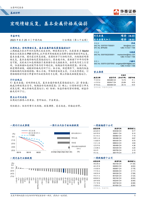 【华泰证券】【20230625】基础材料行业周报(第二十五周):宏观情绪反复,基本金属价格或偏弱-17页