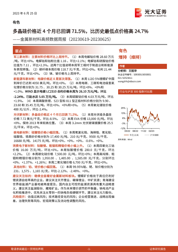 【光大证券】【20230625】金属新材料高频数据周报:多晶硅价格近4个月已回调71.5%,比历史最低点价格高24.7%-24页