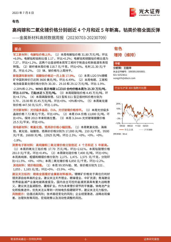 【光大证券】【20230708】20230708-光大证券-金属新材料高频数据周报:高纯镓和二氧化锗价格分别创近4个月和近5年新高,钴类价格全面反弹-24页