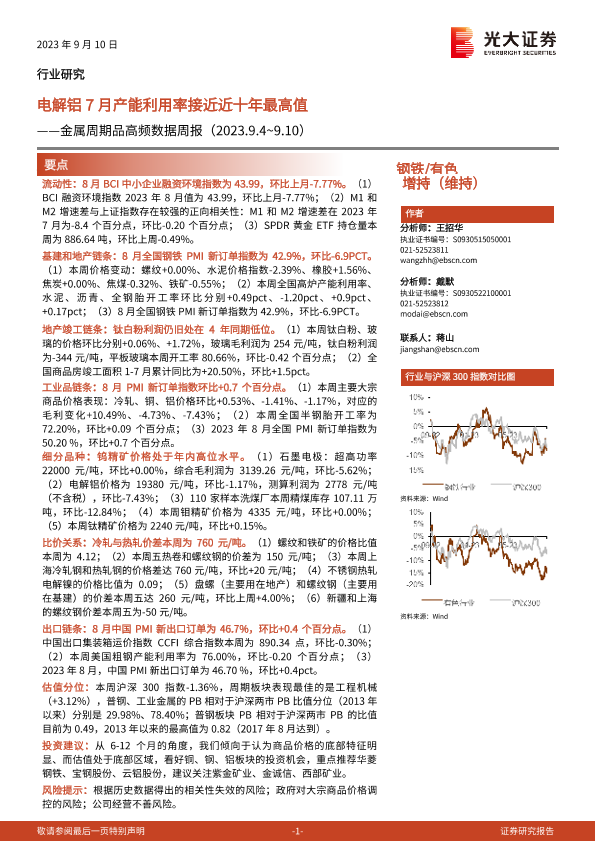 【光大证券】【20230910】金属周期品高频数据周报:电解铝7月产能利用率接近近十年最高值-25页