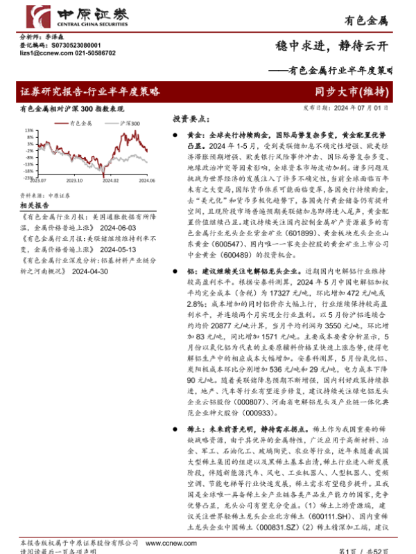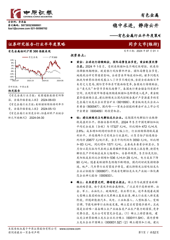 【中原证券】【20240701】20240701-中原证券-有色金属行业半年度策略:稳中求进,静待云开-52页