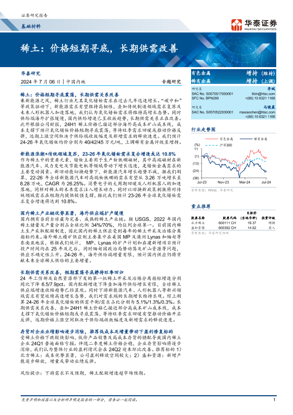 【华泰证券】【20240706】稀土:价格短期寻底,长期供需改善-28页