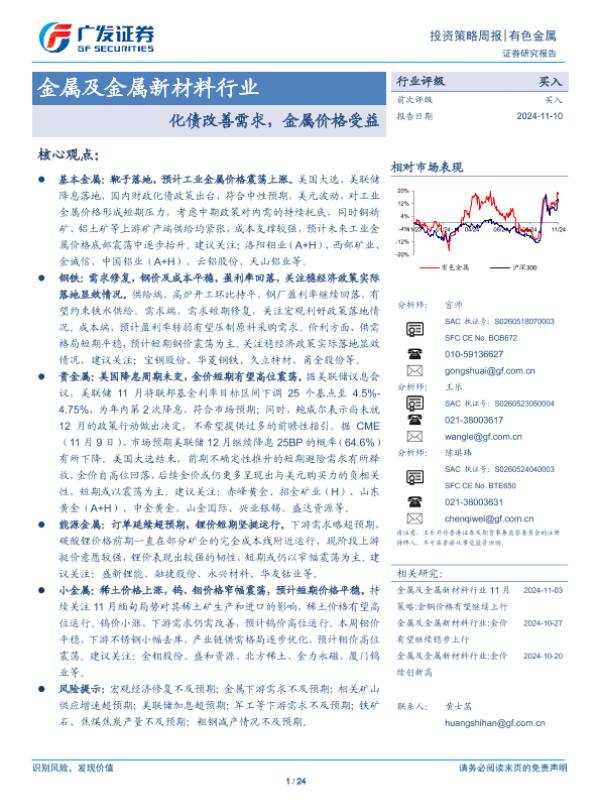 【广发证券】【20241110】20241110-广发证券-金属及金属新材料行业投资策略周报:化债改善需求,金属价格受益-24页