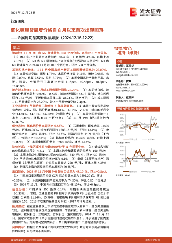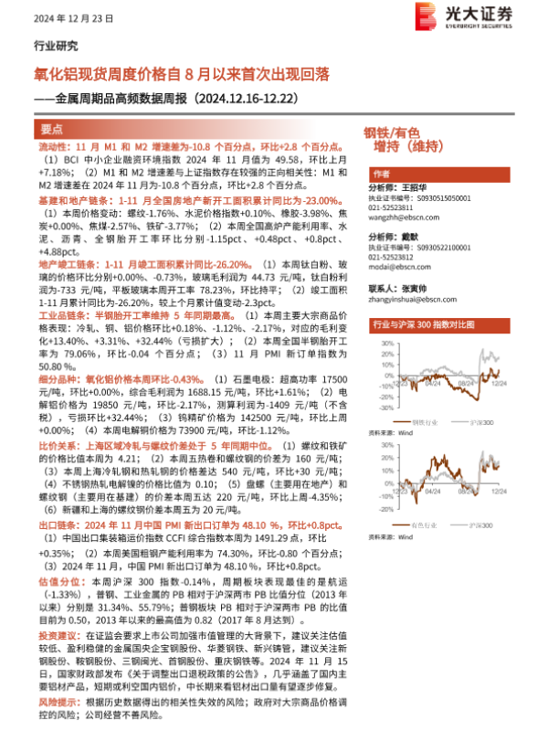 【光大证券】【20241223】金属周期品高频数据周报:氧化铝现货周度价格自8月以来首次出现回落-27页