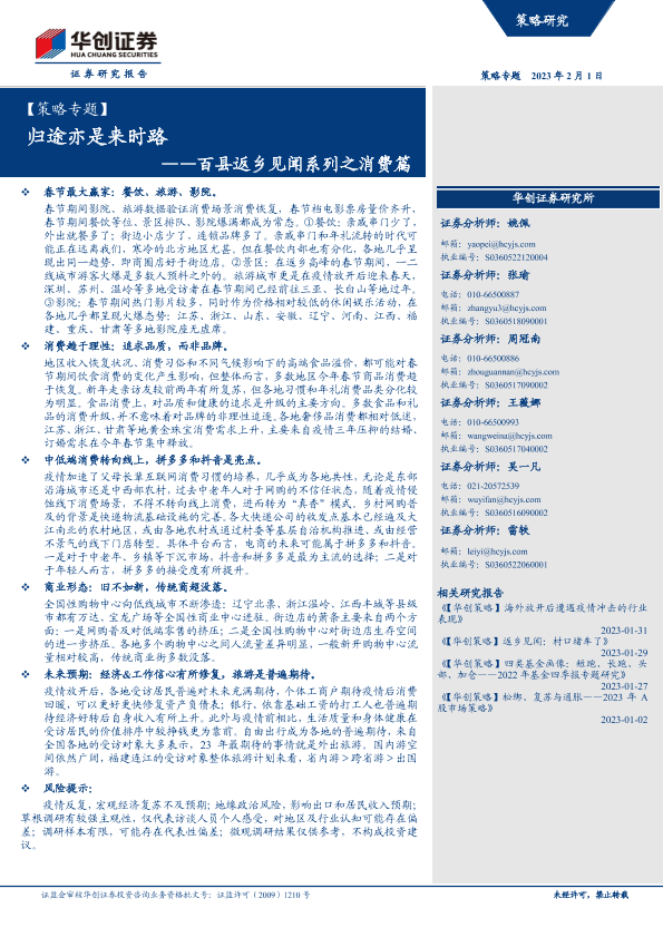【华创证券】【20230201】【策略专题】百县返乡见闻系列之消费篇:归途亦是来时路-15页