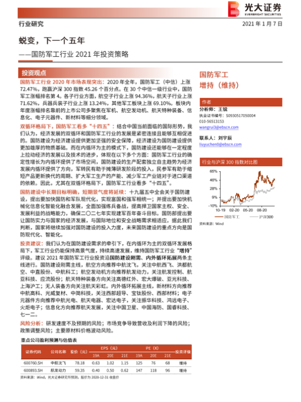 行业发展 国防军工 双循环 十四五规划 投资策略