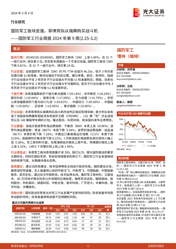 【光大证券】【20240304】国防军工行业周报2024年第9周:国防军工板块走强,菲律宾拟从瑞典购买战斗机-16页