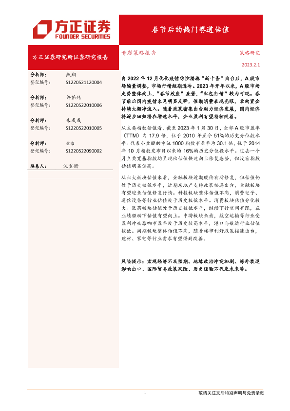 【方正证券】【20230201】春节后的热门赛道估值-20页