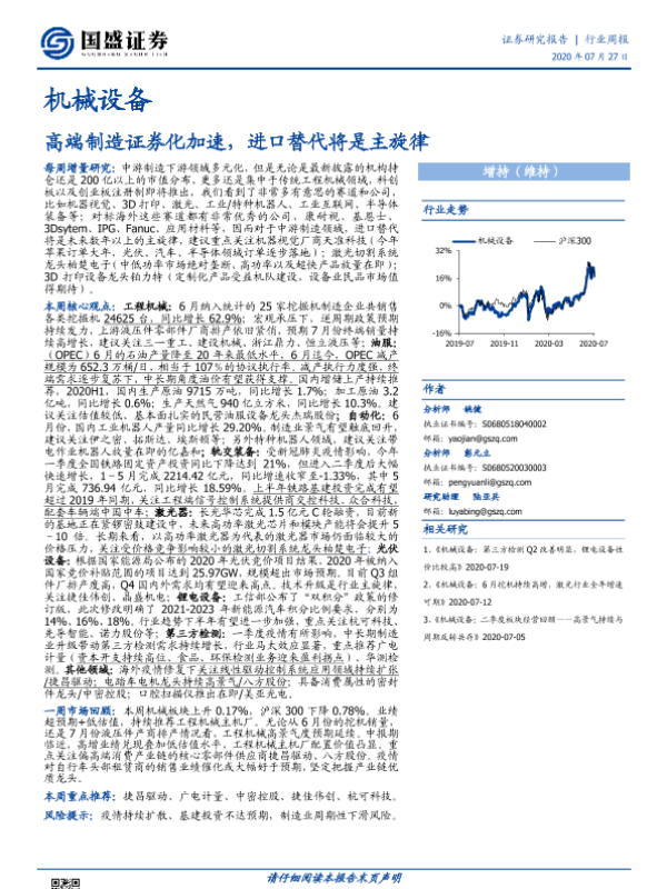 【国盛证券】【20200727】20200727-国盛证券-机械设备行业周报:高端制造证券化加速,进口替代将是主旋律-12页