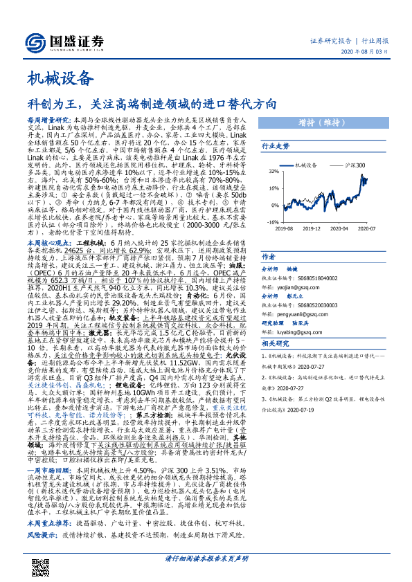 【国盛证券】【20200803】20200803-国盛证券-机械设备行业周报:科创为王,关注高端制造领域的进口替代方向-12页