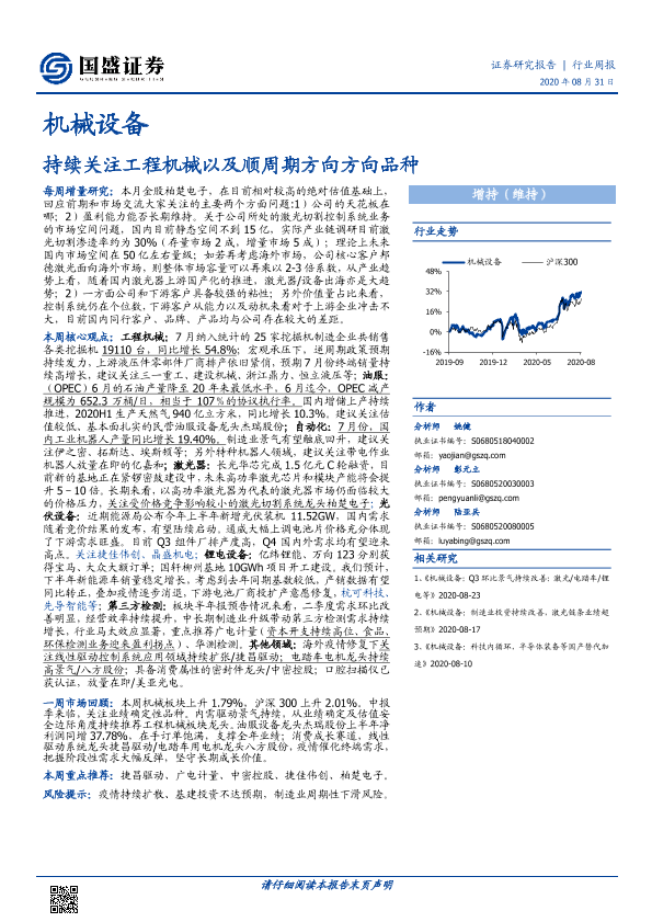 【国盛证券】【20200831】20200831-国盛证券-机械设备行业周报:持续关注工程机械以及顺周期方向方向品种-10页