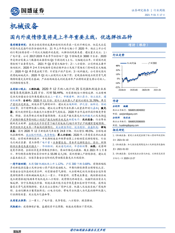 【国盛证券】【20210117】20210117-国盛证券-机械设备行业周报:国内外疫情修复将是上半年重要主线,优选弹性品种-10页