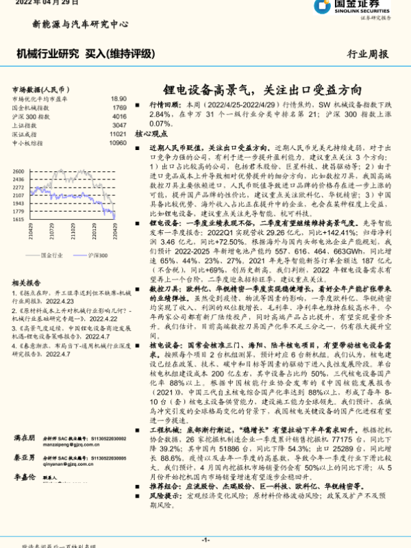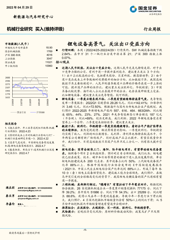 【国金证券】【20220429】20220429-国金证券-机械行业研究:锂电设备高景气,关注出口受益方向-15页