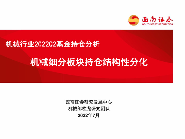 【西南证券】【202207】机械行业2022Q2基金持仓分析:机械细分板块持仓结构性分化-20页