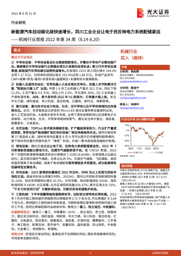 【光大证券】【20220821】机械行业周报2022年第34周:新能源汽车拉动碳化硅快速增长,四川工业企业让电于民反映电力系统配储紧迫-27页