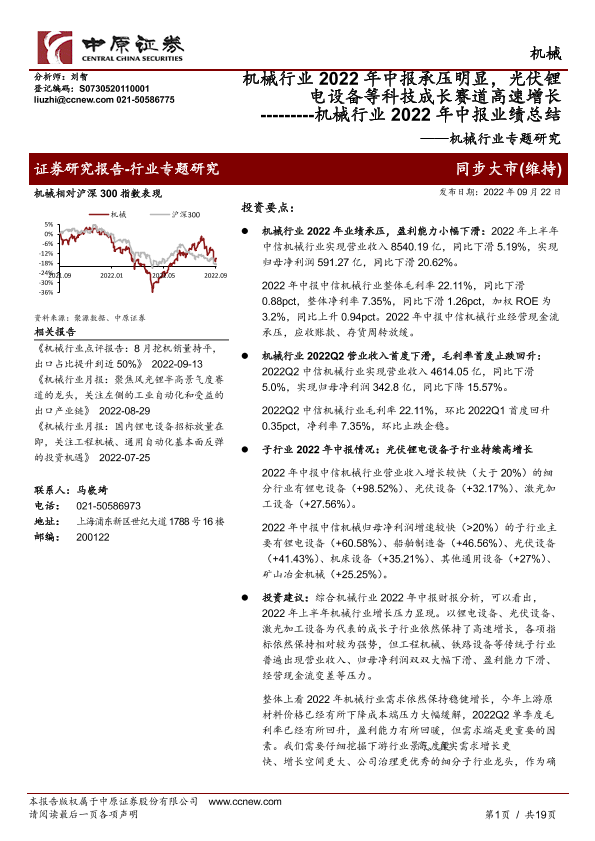 【中原证券】【20220922】机械行业2022年中报承压明显,光伏锂电设备等科技成长赛道高速增长-19页