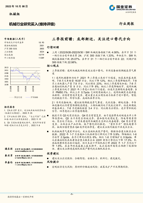 【国金证券】【20221008】20221008-国金证券-机械行业周报:三季报前瞻:底部渐近,关注进口替代方向-20页