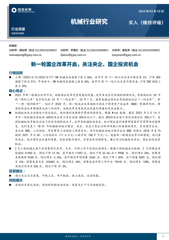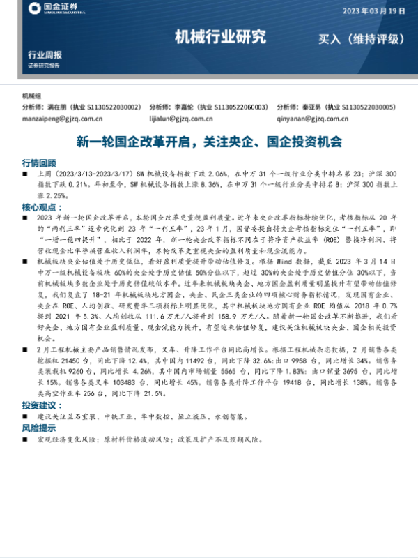 【国金证券】【20230319】20230319-国金证券-机械行业研究:新一轮国企改革开启,关注央企、国企投资机会-17页