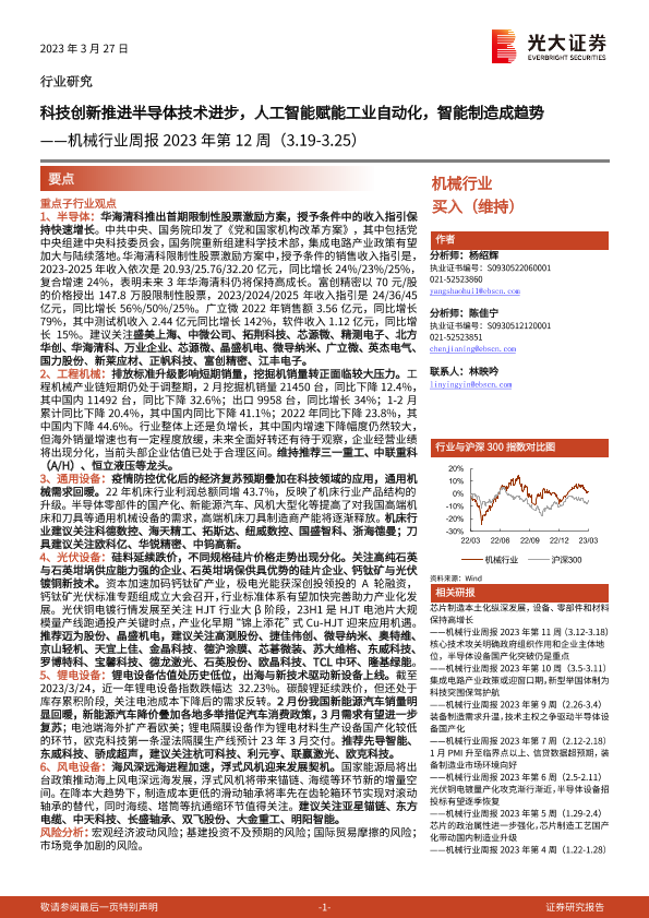 【光大证券】【20230327】机械行业周报2023年第12周:科技创新推进半导体技术进步,人工智能赋能工业自动化,智能制造成趋势-21页