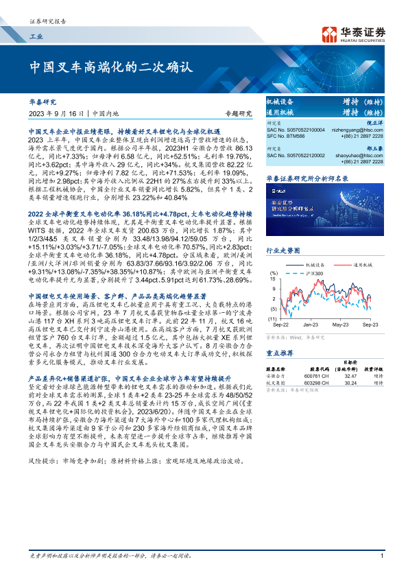 【华泰证券】【20230916】中国叉车高端化的二次确认-23页